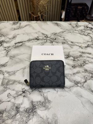 Coac_h Signature Monogram Zip-around Compact Wallet (Black) (60067)