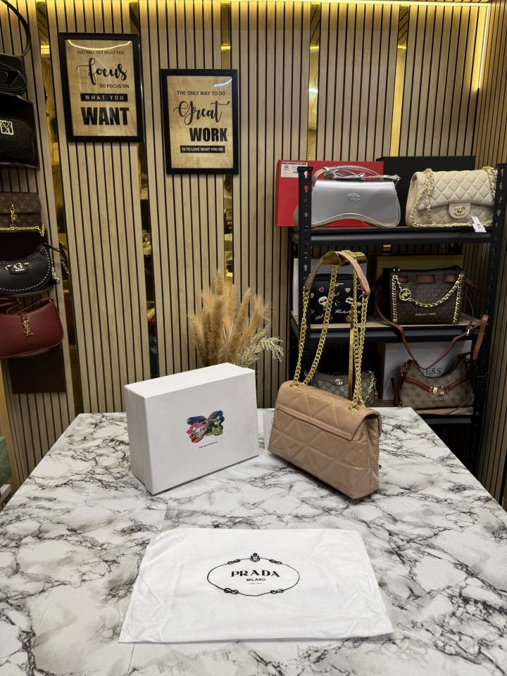 Prad_a Quilted Spectrum Shoulder Bag With Box And Dust Bag (V9861-1 Apricot)